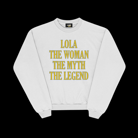 LOLA THE WOMAN THE MYTH THE LEGEND PULLOVER CREWNECK