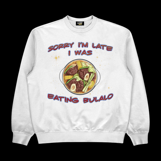 SORRY I’M LATE I WAS EATING BULALO - PULLOVER CREWNECK SWEATSHIRT