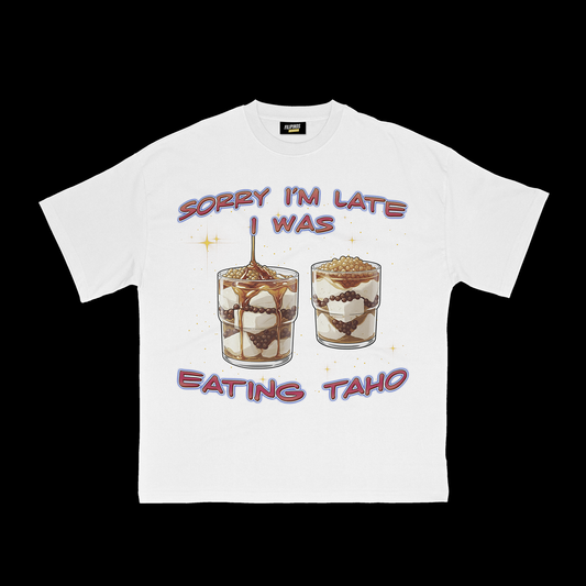 SORRY I'M LATE I WAS EATING TAHO T-SHIRT